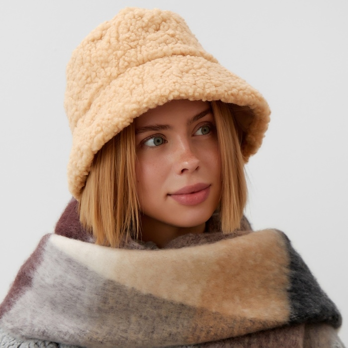 Панама зимняя двусторонняя MINAKU, цвет песочный, р-р 56-58