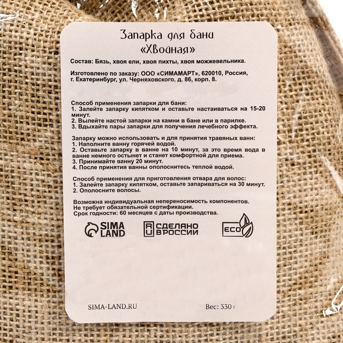 Запарка для бани и чана "Хвойная" Ель, Пихта, Можжевельник 330 г Добропаровъ