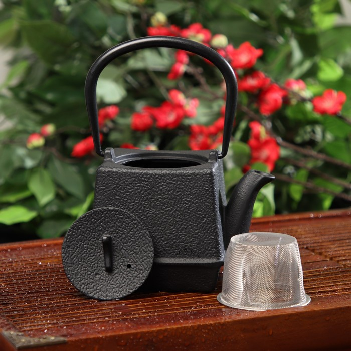 Чайник для плиты Доляна «Бокей. Этно», 700 мл, с ситом, чугун, с эмалированным покрытием, индукция, цвет чёрный