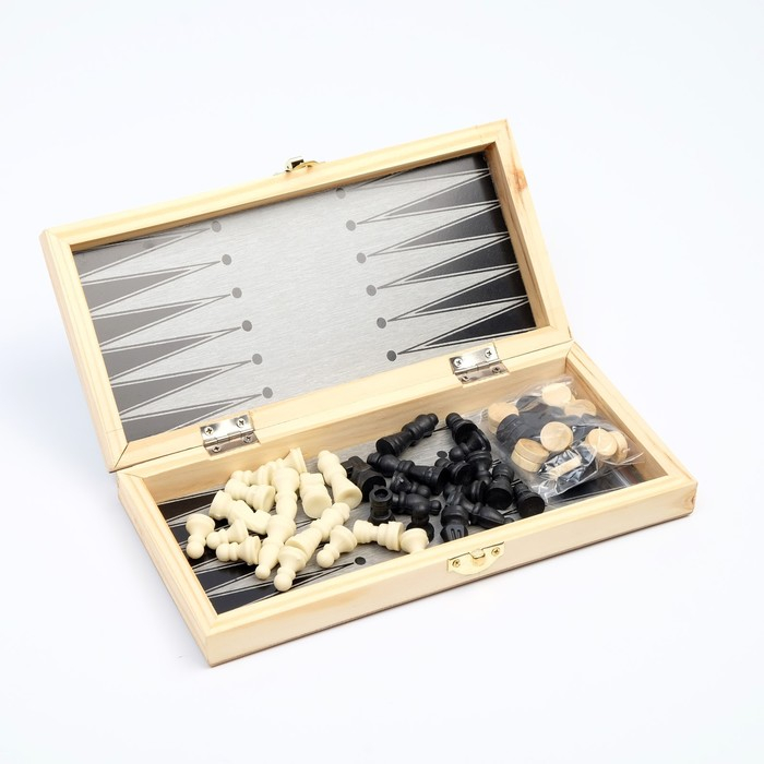 Настольная игра 3 в 1 "Шелест": нарды, шахматы, шашки, 24 х 24 см