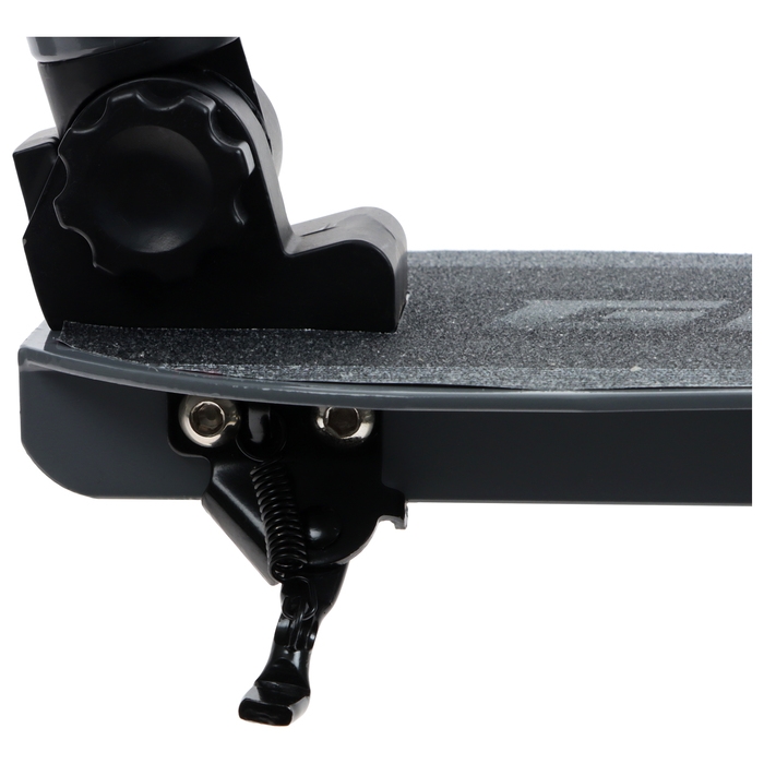 - Передний амортизатор гасит вибрации от неровности дороги, что уменьшает нагрузку на руки и увеличивает контроль над управлением самокатом.