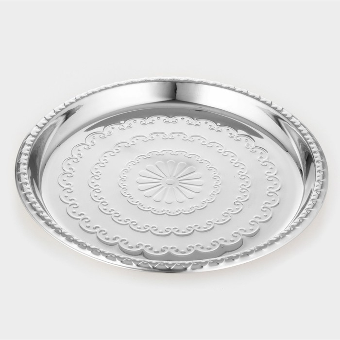 Поднос из нержавеющей стали круглый «Смеяна», d=33 см, цвет серебряный