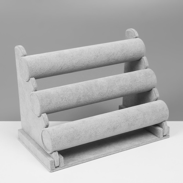 Подставка для часов, браслетов, флок, 3 ролика, 31×17,2×23 см, d=5 см, цвет серый