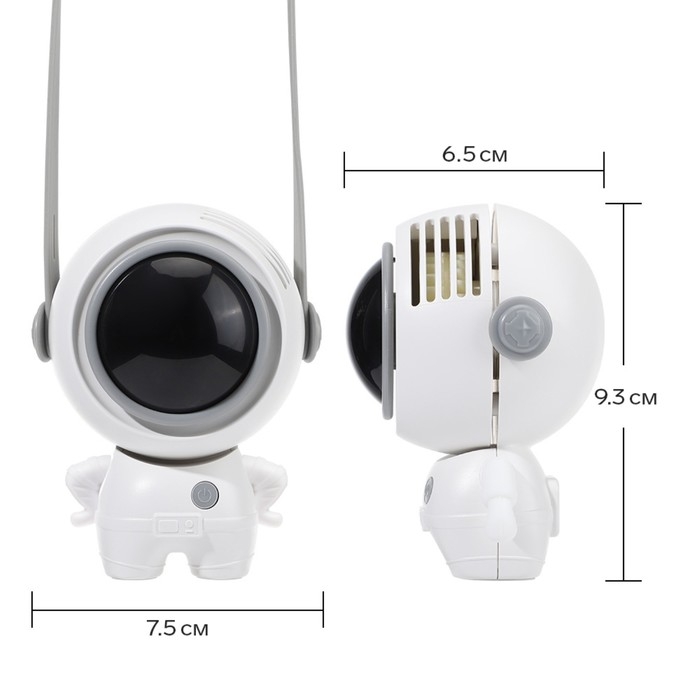 Портативный вентилятор "Астронавт" MF040, 500 мАч, 3 режима, вход Type-С, провод, белый