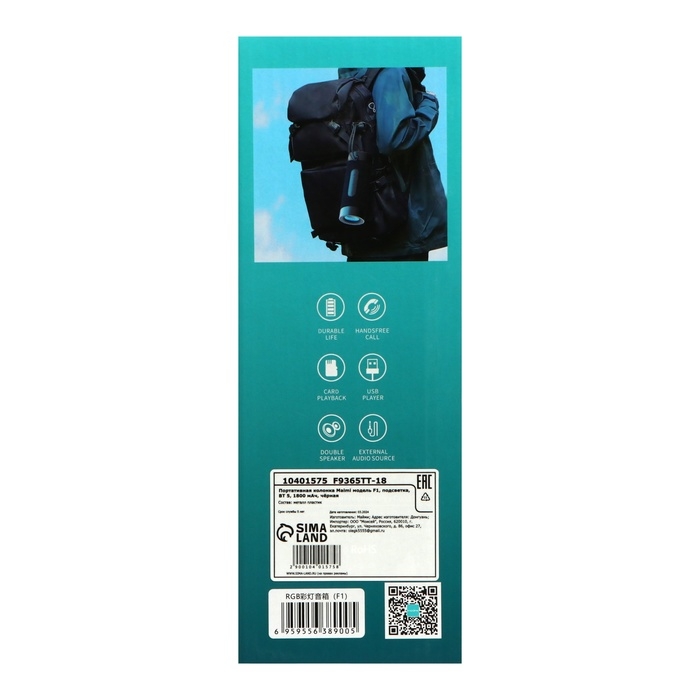 Портативная колонка Maimi F1, microUSB, подсветка, BT 5, 1800 мАч, чёрная