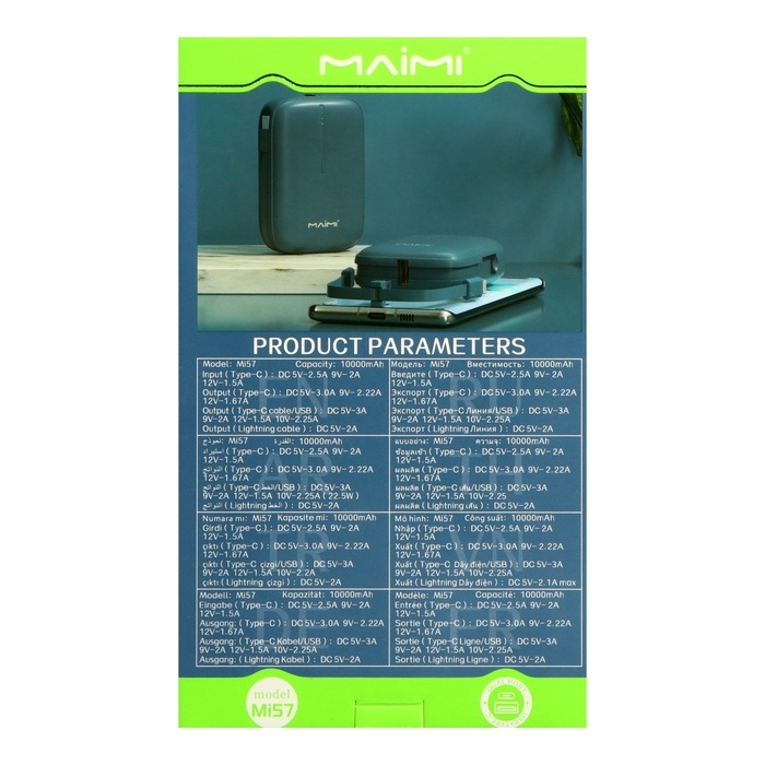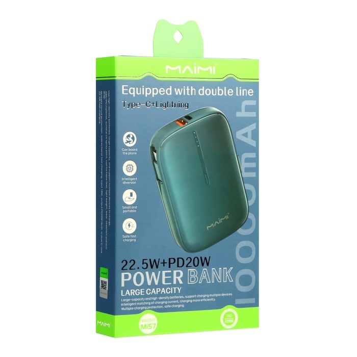 Внешний аккумулятор Maimi Mi57, 10000 мАч, 3 А, 22.5 Вт, USB, Type-C, PD, синий