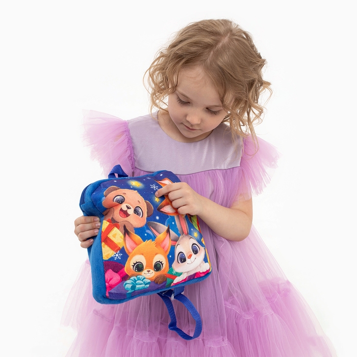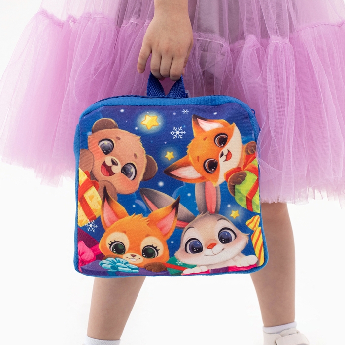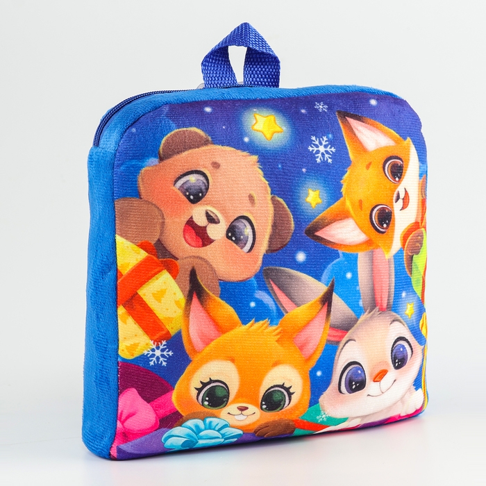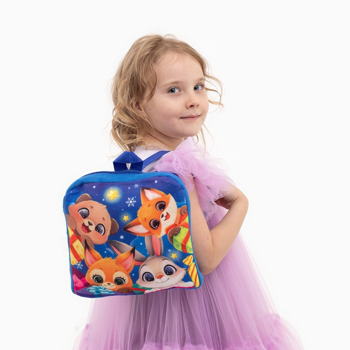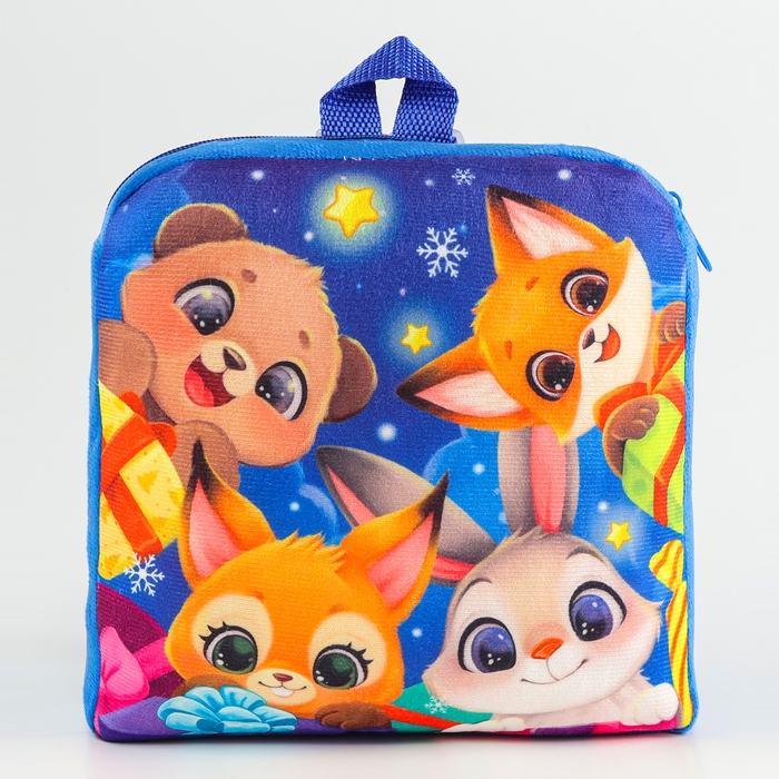 Новый год! Рюкзак детский новогодний «Зверята» с новогодними подарками, 24х24 см