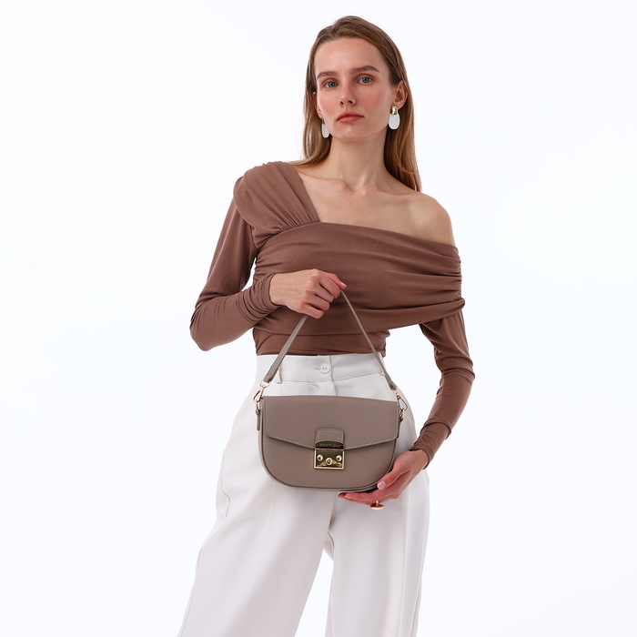 - Изысканный дизайн: сочетание бежевого цвета и золотистой фурнитуры делает сумку универсальной для любого образа.