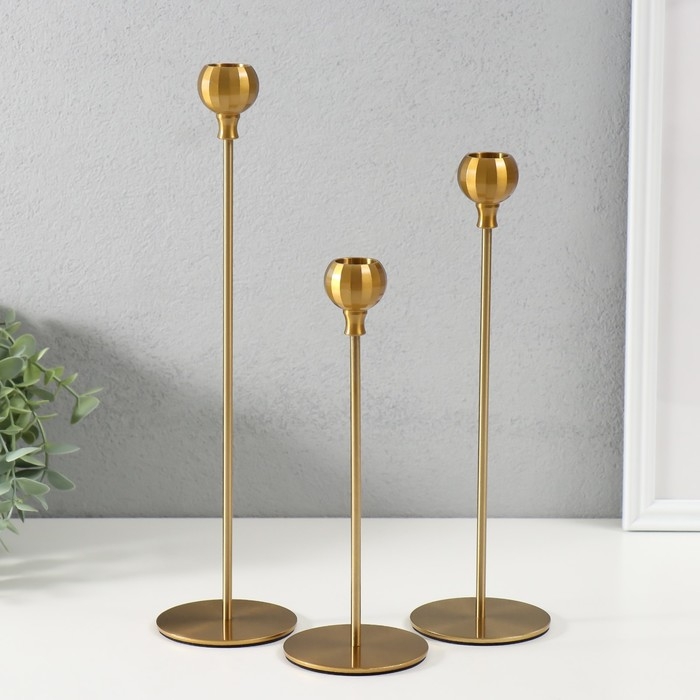 Подсвечник металл "Шар с гранями" тёмное золото d=2 см, набор 3 шт h=32 см, 27 см, 22 см