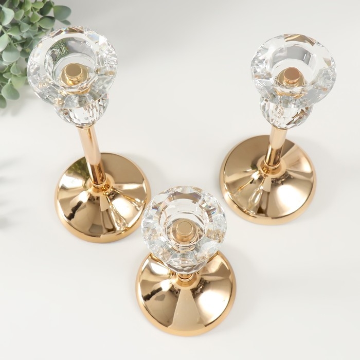 Подсвечник металл, стекло "Оливия" d=4 см, набор 3 шт h=33 см, 27 см, 22 см