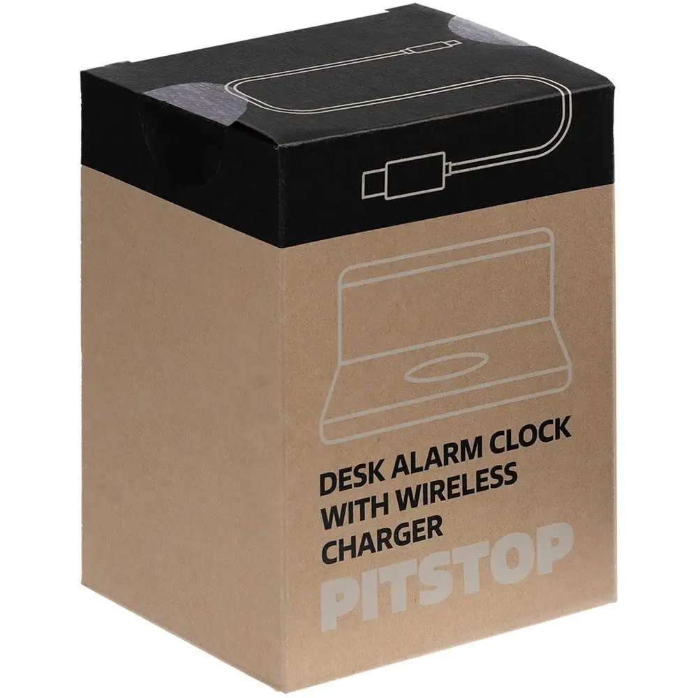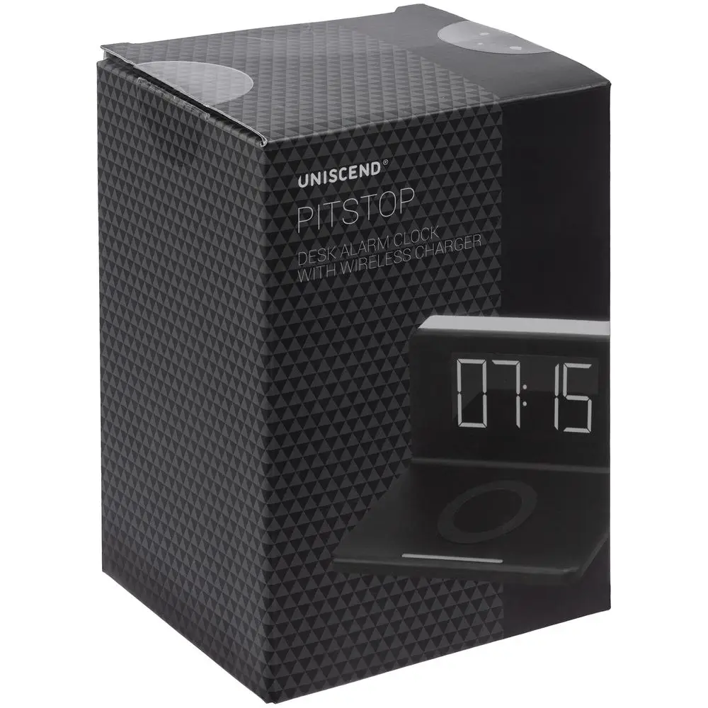 Часы настольные с беспроводным зарядным устройством Pitstop, черные