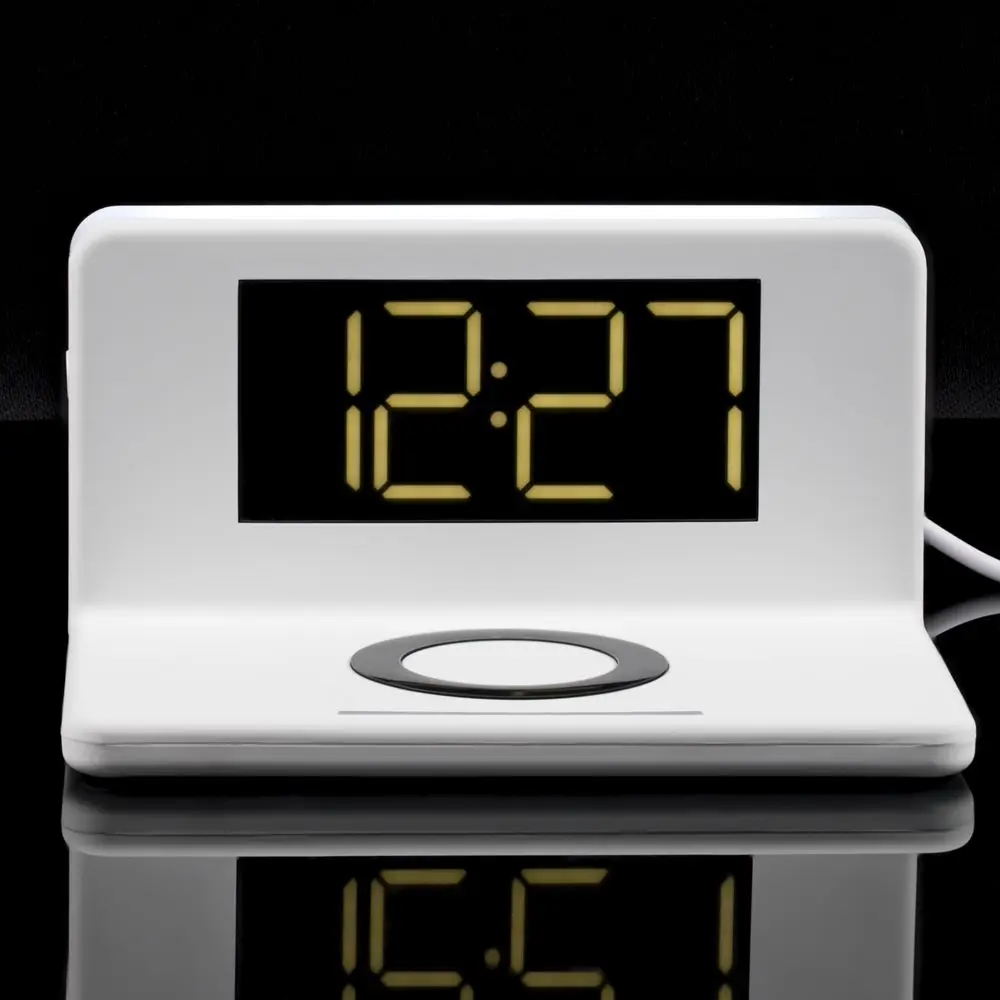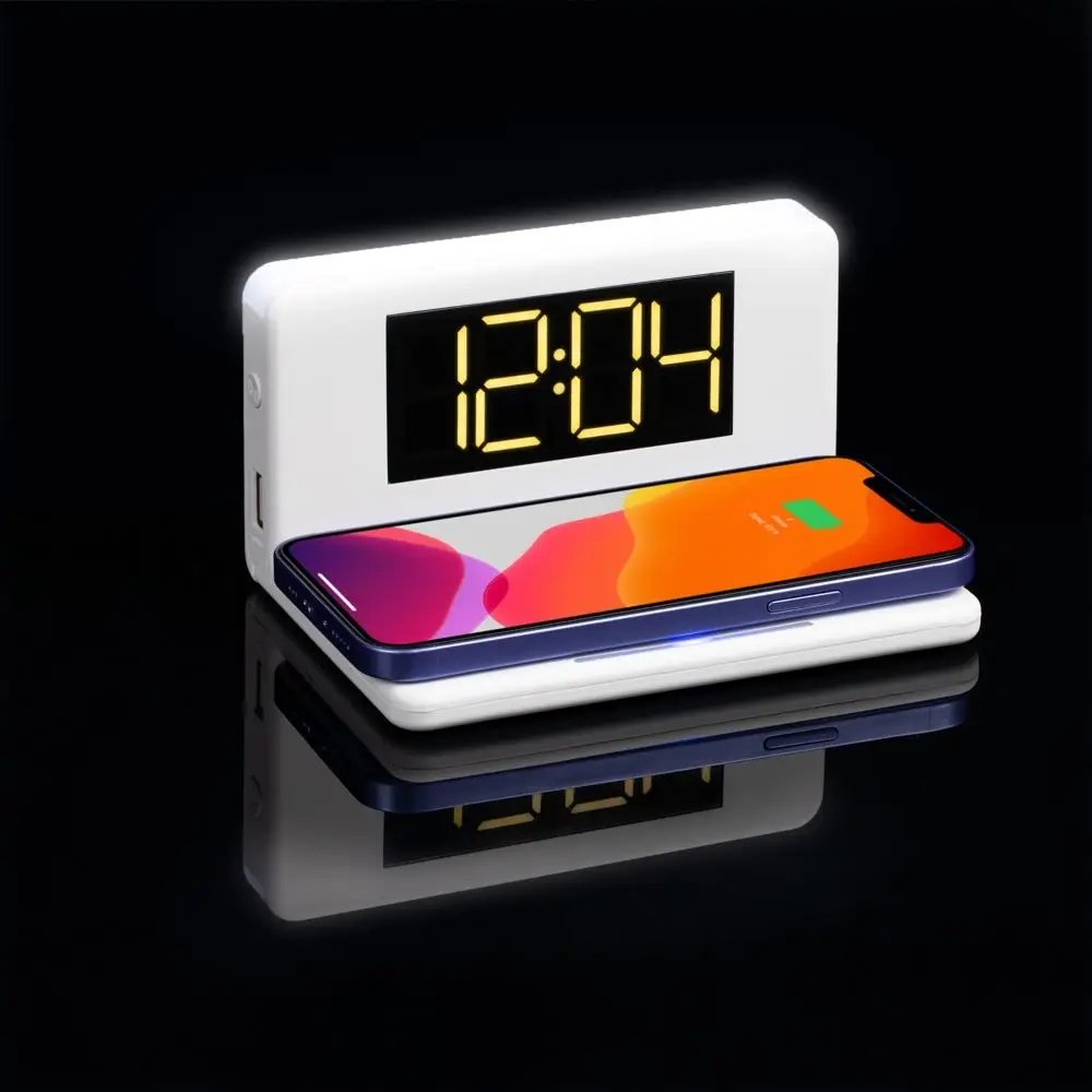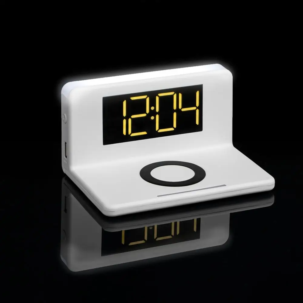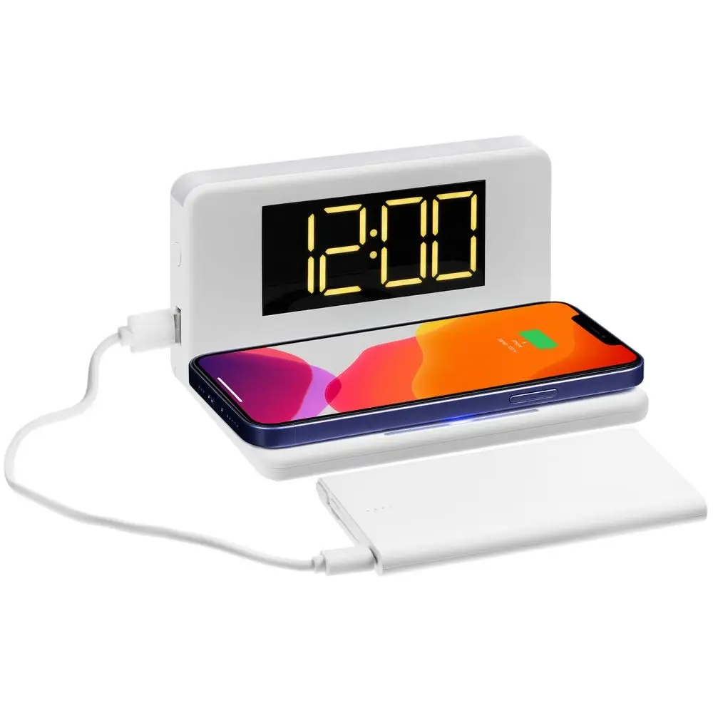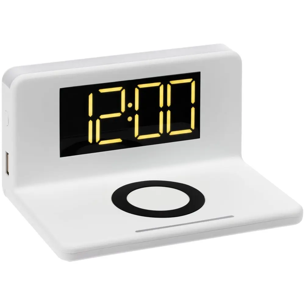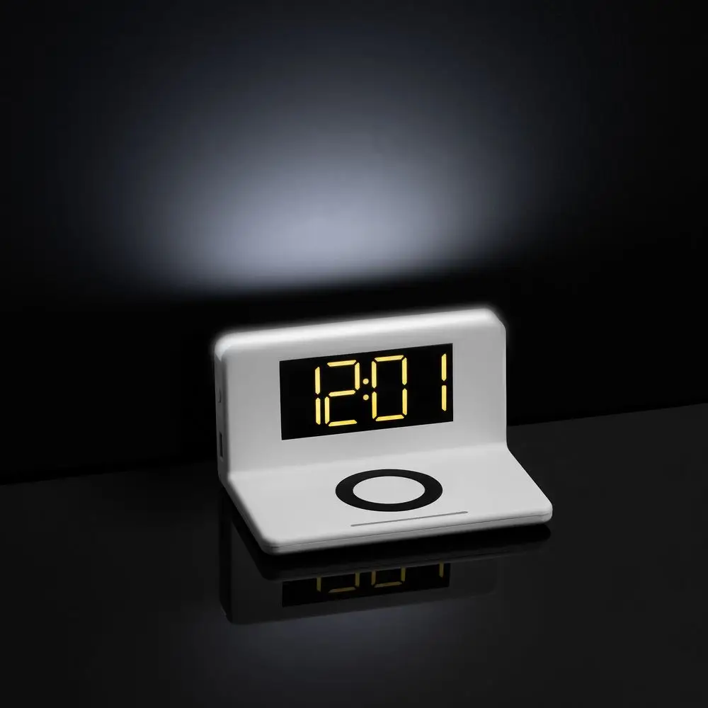 Часы настольные с беспроводным зарядным устройством Pitstop, белые