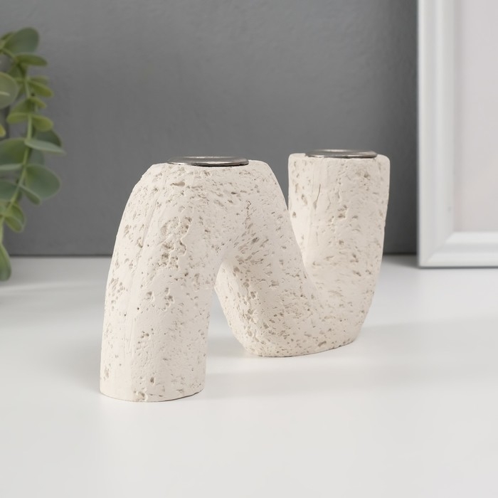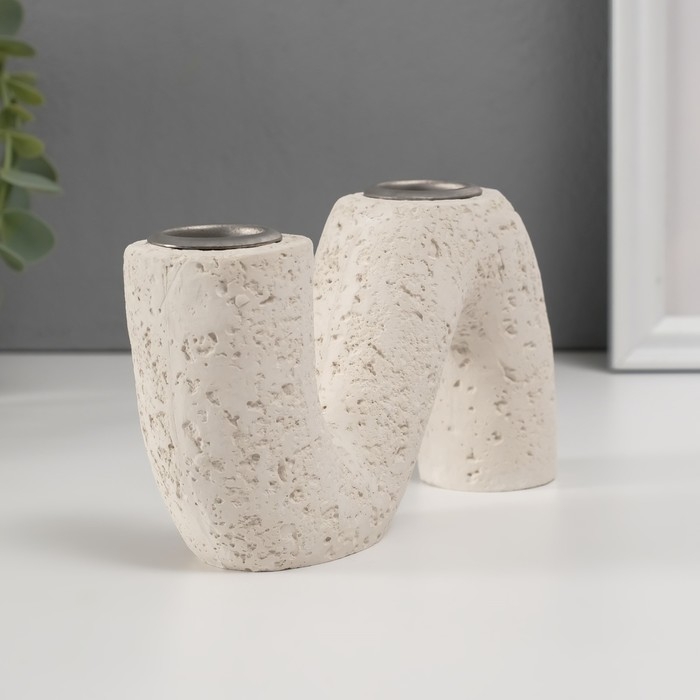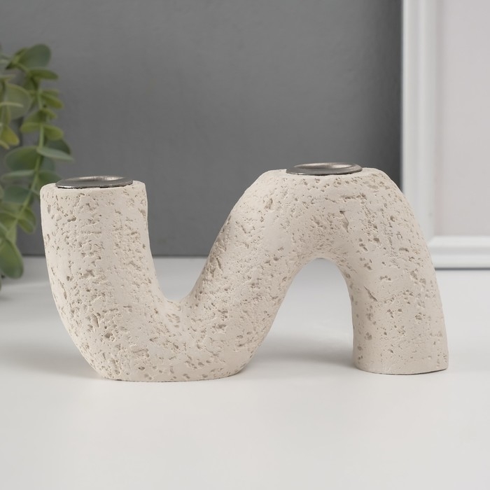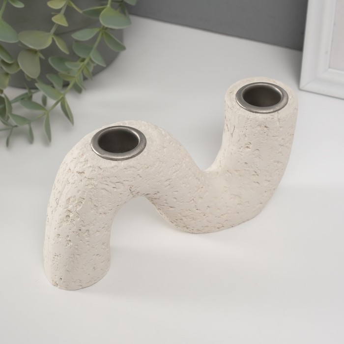 Подсвечник гипс, металл на 2 свечи "Абстракция. Волна" d=2,5 см 3,5х16,5х8,7 см