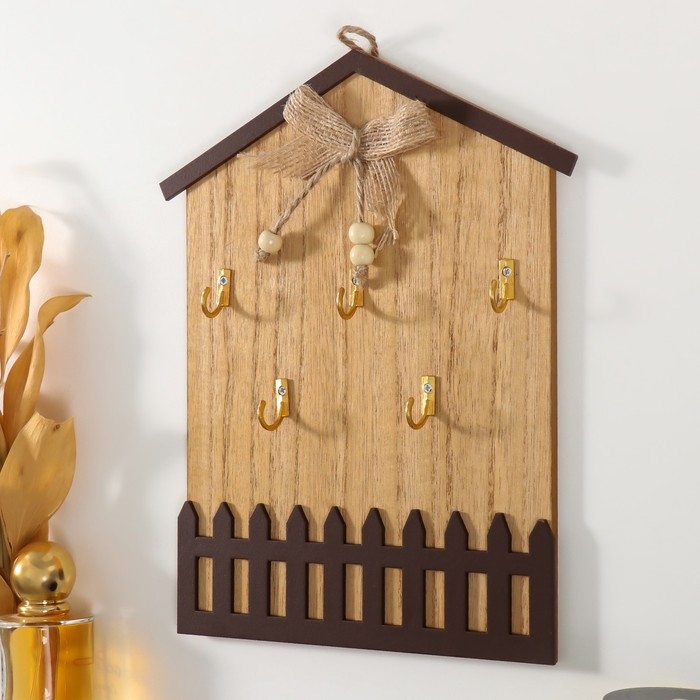 Крючки декоративные дерево "Домик с бантом" 18х25 см