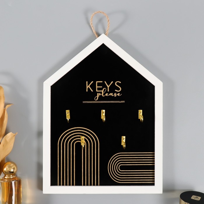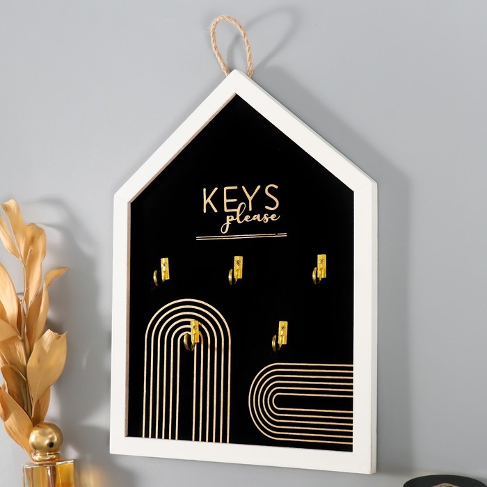 Крючки декоративные дерево "Ключи. Абстракция. Радуга" чёрная с золотом 24х32 см