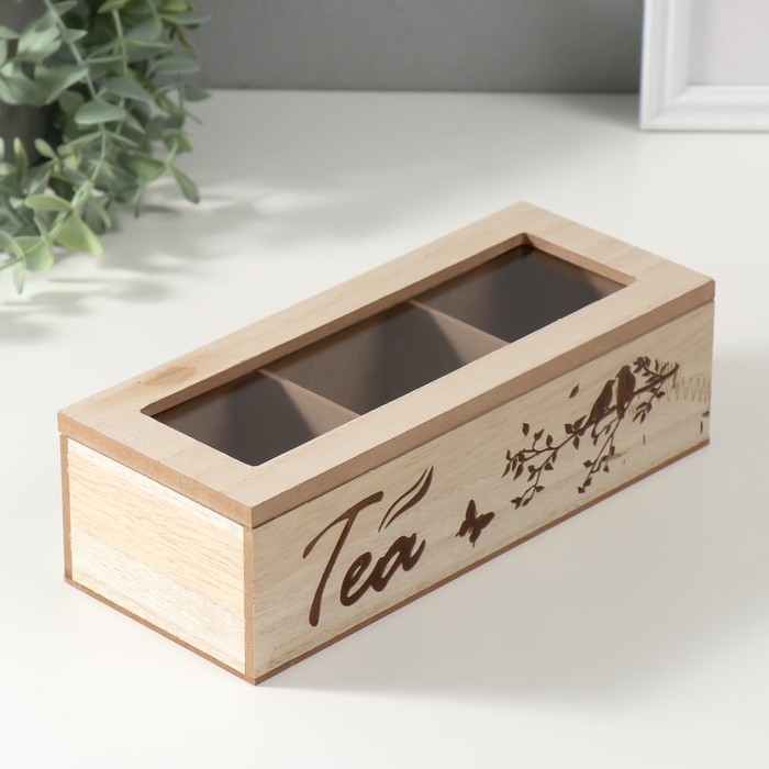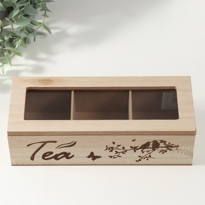 Шкатулка дерево 3 деления "Птицы на ветке" 9,7х24х7 см