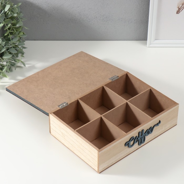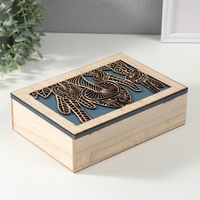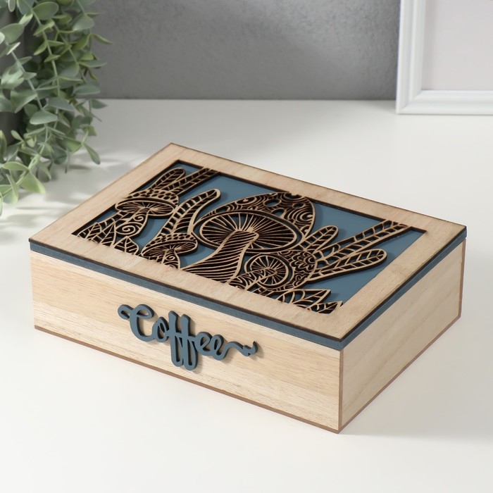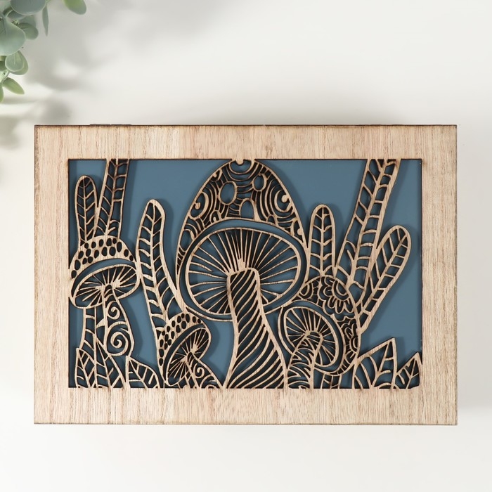 Шкатулка дерево 6 делений "Грибы" бежево-синяя 17х24х7 см