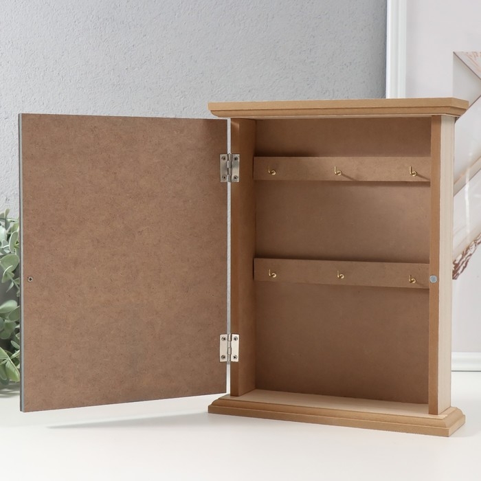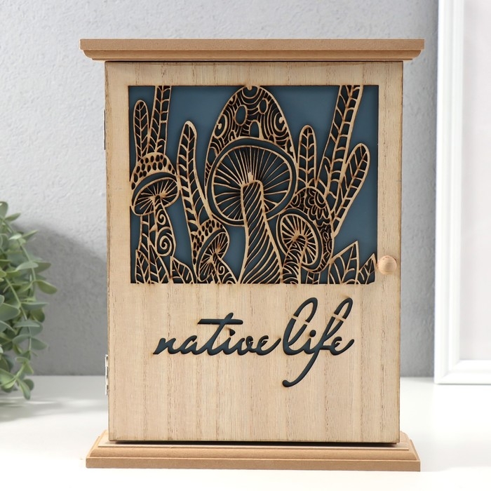 Ключница дерево 6 крючков "Грибы" бежево-синяя 6,2х19,5х25,2 см