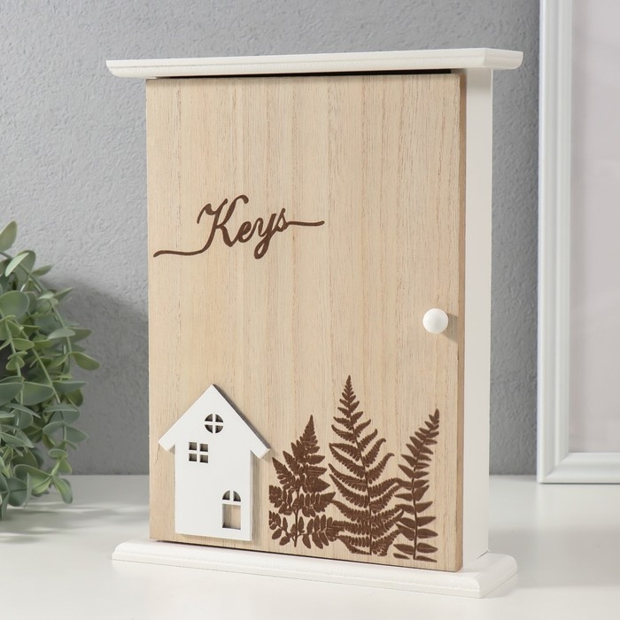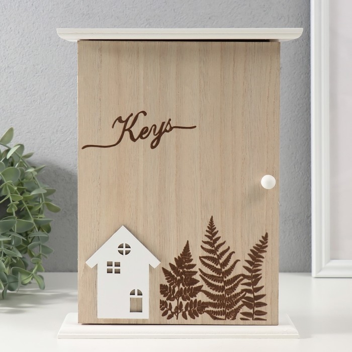 Ключница дерево 5 крючков "Дом и папоротник" 6х20х25,8 см