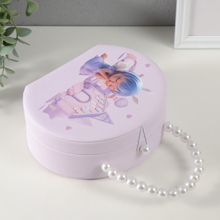 Шкатулка кожзам для украшений сумочка "Малышка-ангел у домика" сирень 19х15,5х7,5 см