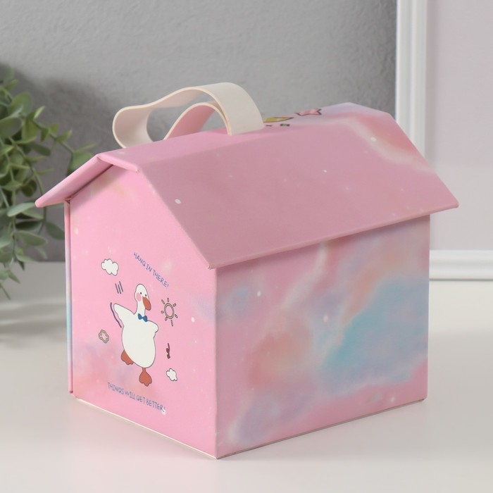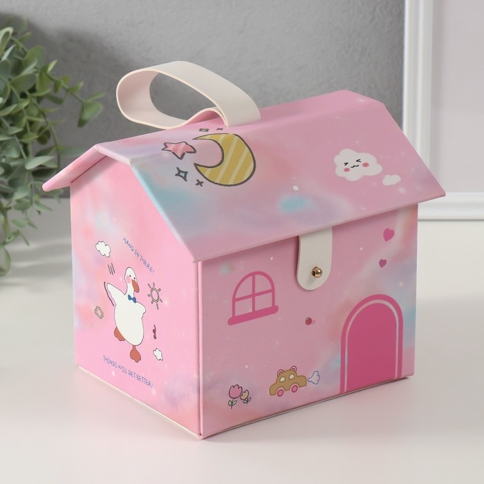 Шкатулка кожзам для украшений домик "Утёнок" розовая 16,5х19х16,5 см