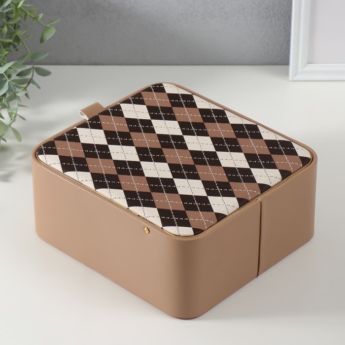 Шкатулка кожзам для украшений "Клетка" бежевая 20х22,5х9,5 см
