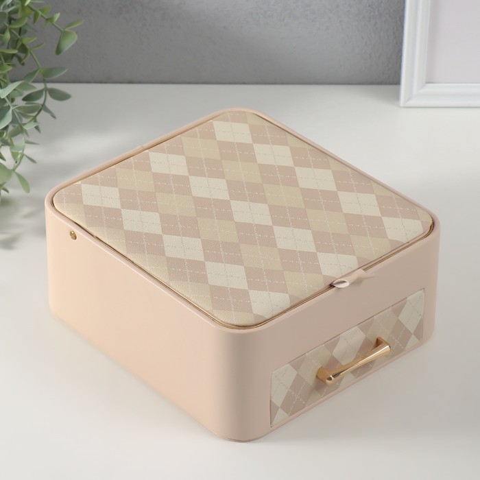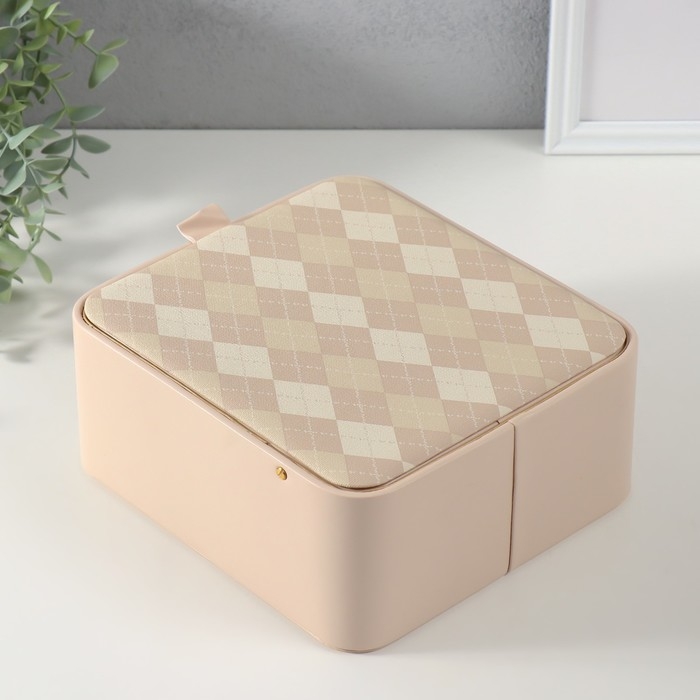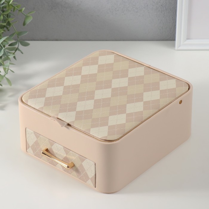 Шкатулка кожзам для украшений "Клетка" молочная 20х22,5х9,5 см