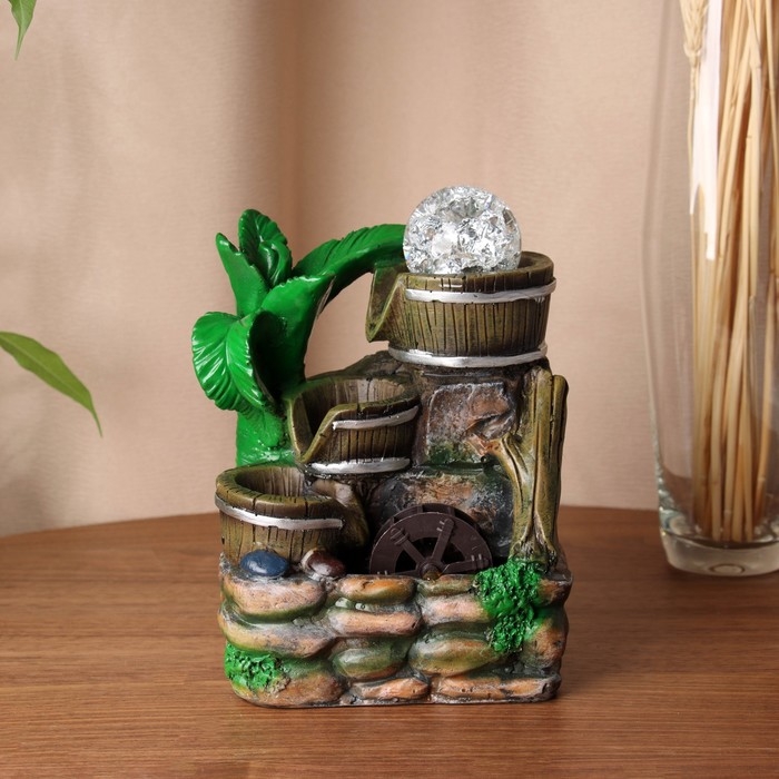 Фонтан "Каменная стена под деревом" 19х13 см (без подсветки, с шариком)