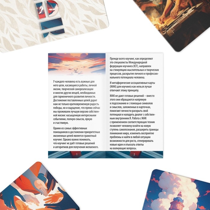 У каждого человека есть важные для него цели, и один из самых эффективных инструментов для их достижения – грамотный коучинг, направленный на раскрытие потенциала человека. А метафорические ассоциативные карты (МАК) являются идеальным помощником в этом процессе. МАК обращаются к подсознанию и с помощью символов и смыслов, заложенных в карточках, помогают личности осознать заложенный в ней огромный потенциал и обрести уверенность в себе и своих силах.