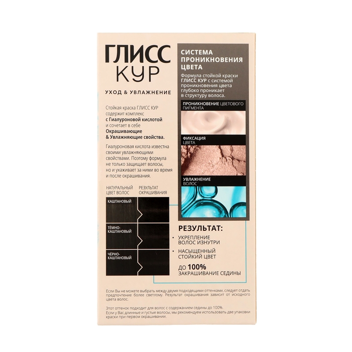 Стойкая краска для волос глисс кур уход и увлажнение с гиалуроновой кислотой и защитой от повреждений 3-0 Чёрно-каштановый.