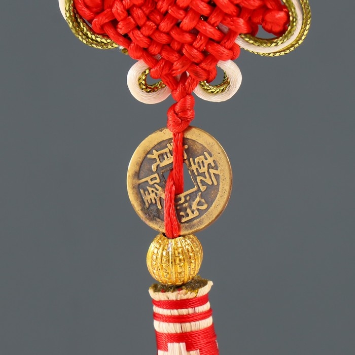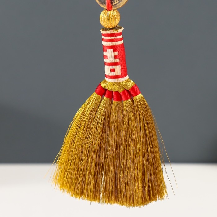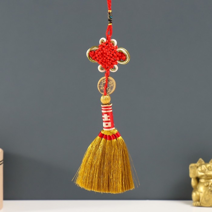 Подвеска текстиль "Золотая метла с монеткой и узлом Счастья" 29 см