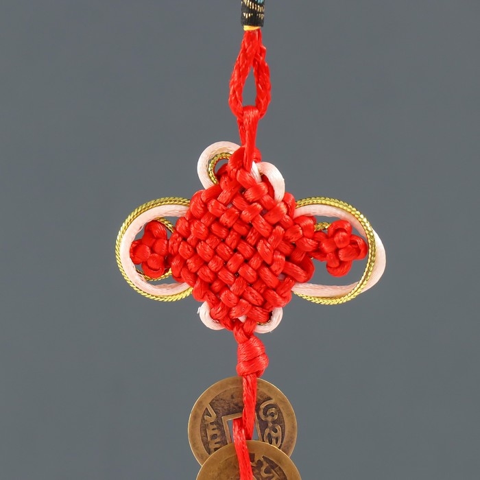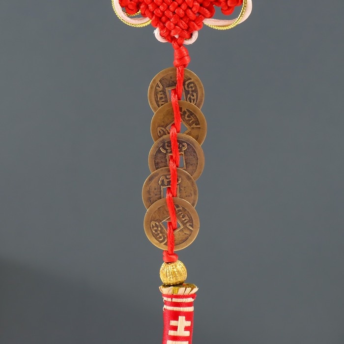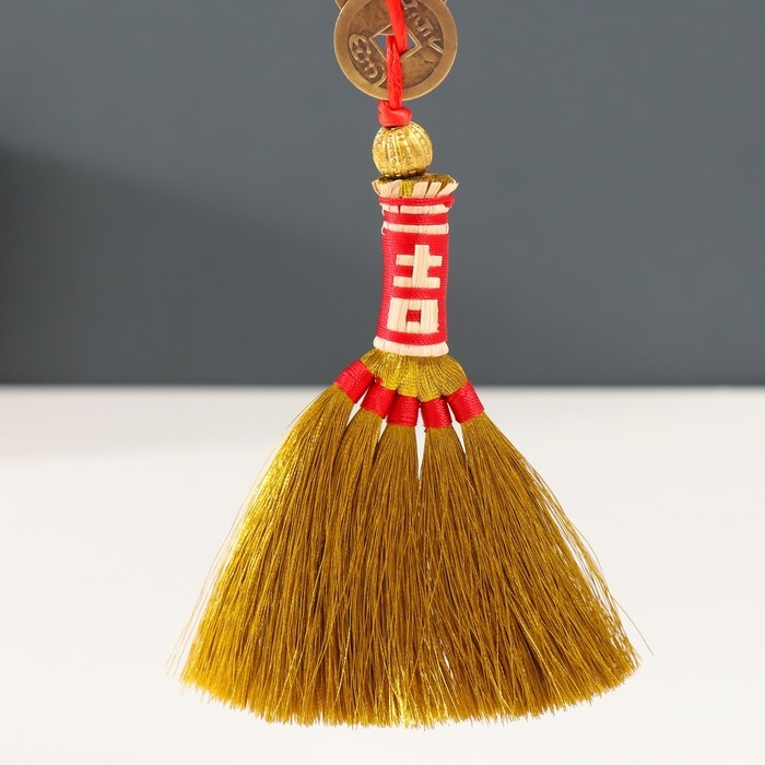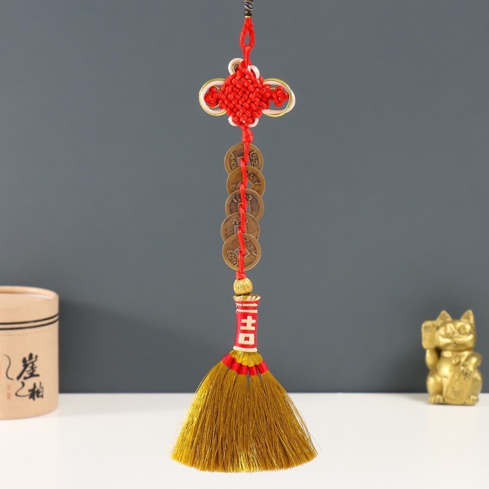 Подвеска текстиль "Золотая метла с 5-ю монетками и узлом Счастья" 32,5 см