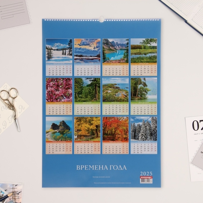 Календарь перекидной на ригеле А2 "Времена года" 2025, 42 х 60 см