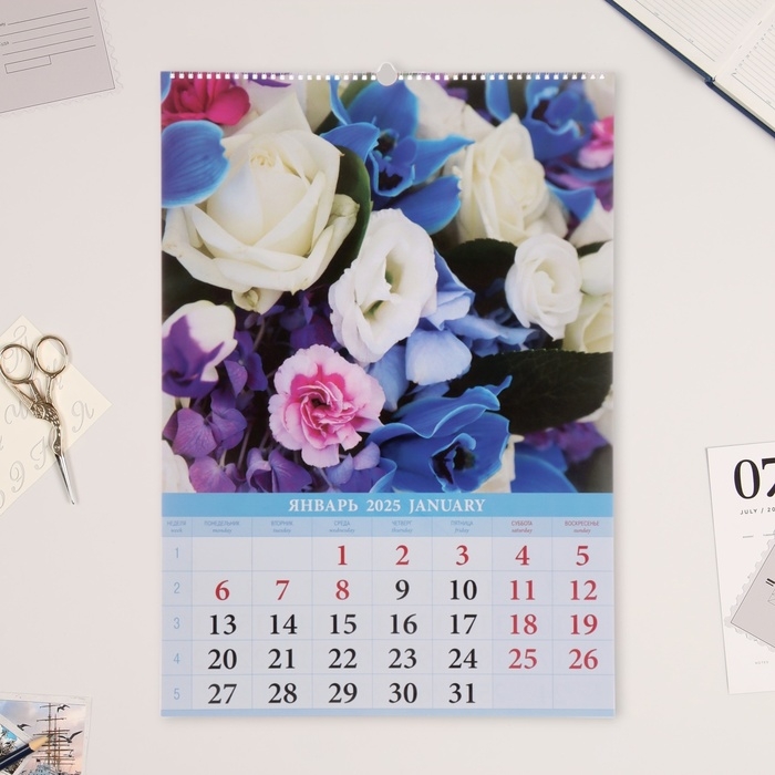 Календарь перекидной на ригеле А2 "Букеты" 2025, 42 х 60 см