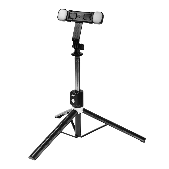 Трипод-монопод A12, 2 кольцевые лампы, в комплекте ПДУ, провод Туре-С, черный