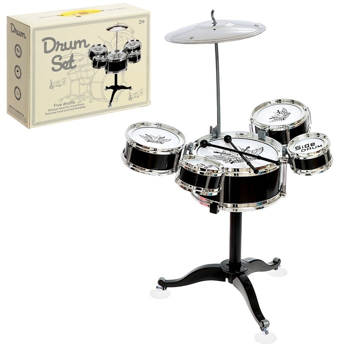 Барабанная установка «Хард-рок», 5 барабанов, 1 тарелка, цвет чёрный
