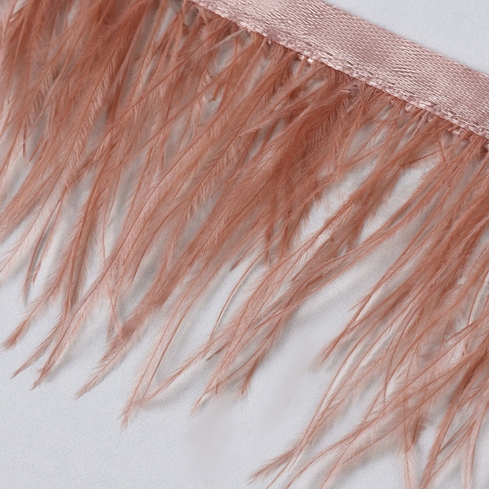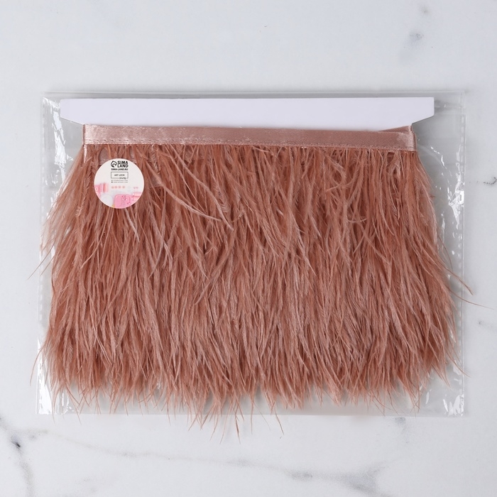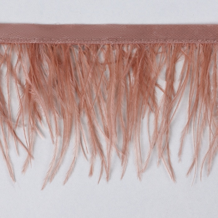 Тесьма с перьями страуса, 8-10 см, 5 ± 0,5 м, цвет лососёвый
