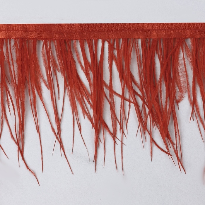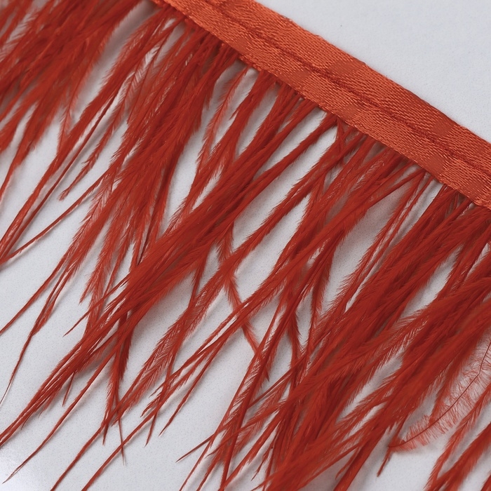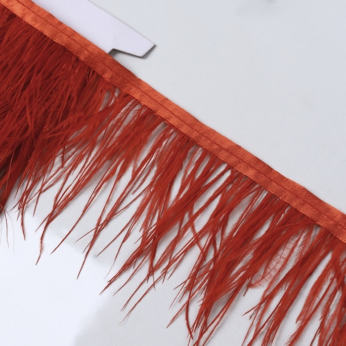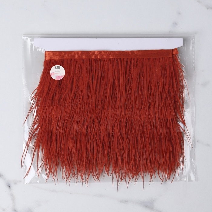 Тесьма с перьями страуса, 8-10 см, 5 ± 0,5 м, цвет алый