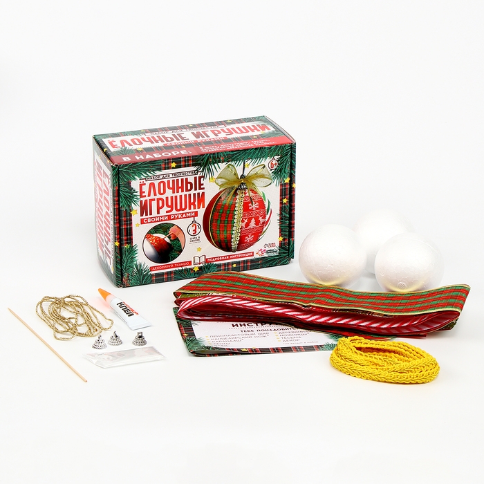 Набор для творчества «Ёлочные игрушки», лоскутки, 3 шара