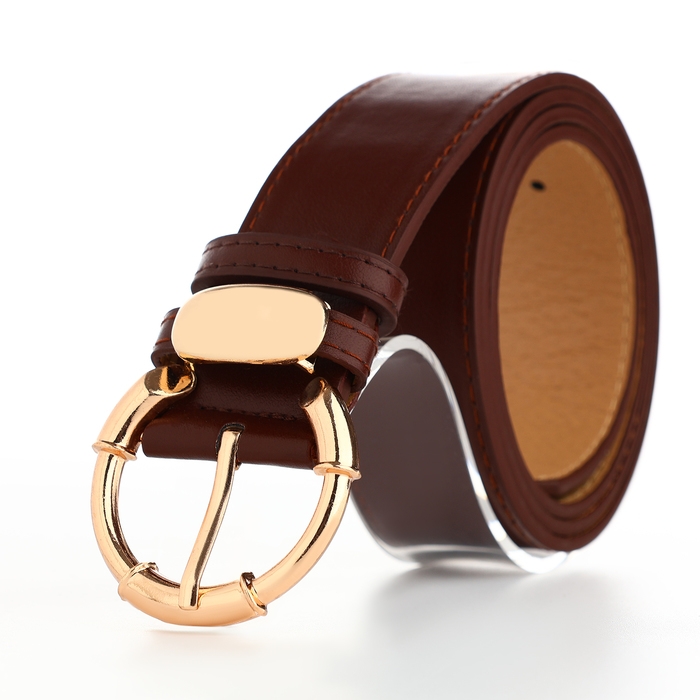 Ремень женский, ширина 4 см, винт, пряжка золото, цвет коричневый