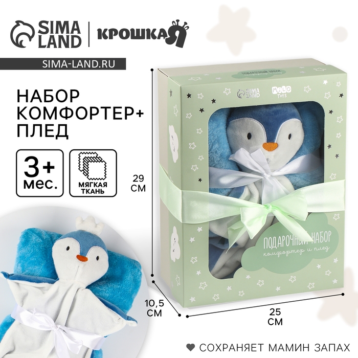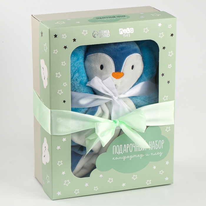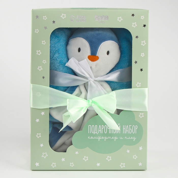 Набор подарочный: Комфортер 27 см + плед 71х125 см, «Пингвин»