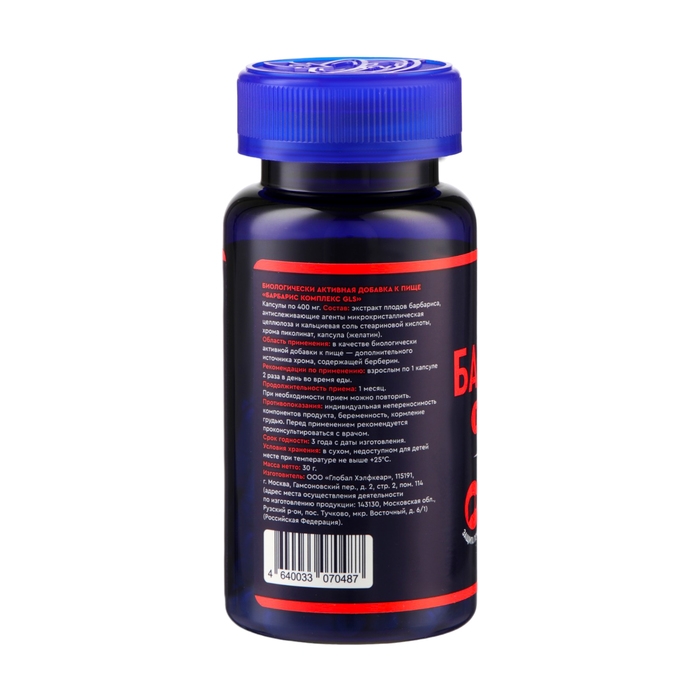 Барбарис комплекс GLS — это биологически активная добавка, содержащая экстракт плодов барбариса и пиколинат хрома. Она предназначена для дополнительного источника хрома и содержит берберин.
