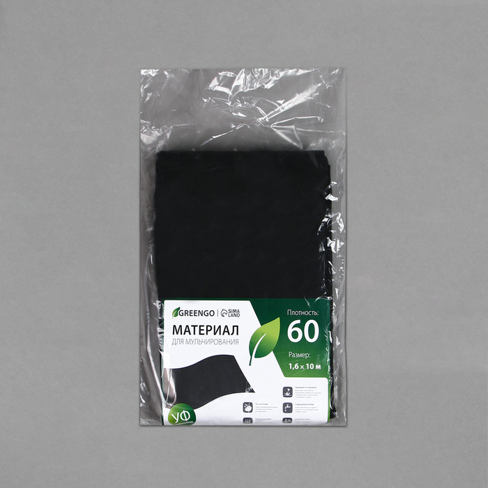 Материал мульчирующий, 10 × 1,6 м, плотность 60 г/м², спанбонд с УФ-стабилизатором, чёрный, Greengo, Эконом 30%