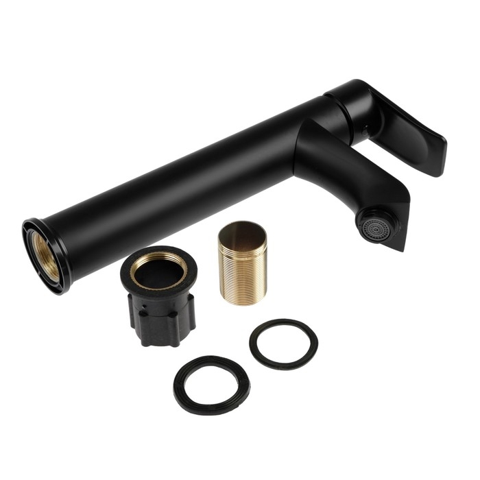 Смеситель для раковины ZEIN Z3720, однорычажный, длина излива 12 см, высокий, пластик,черный