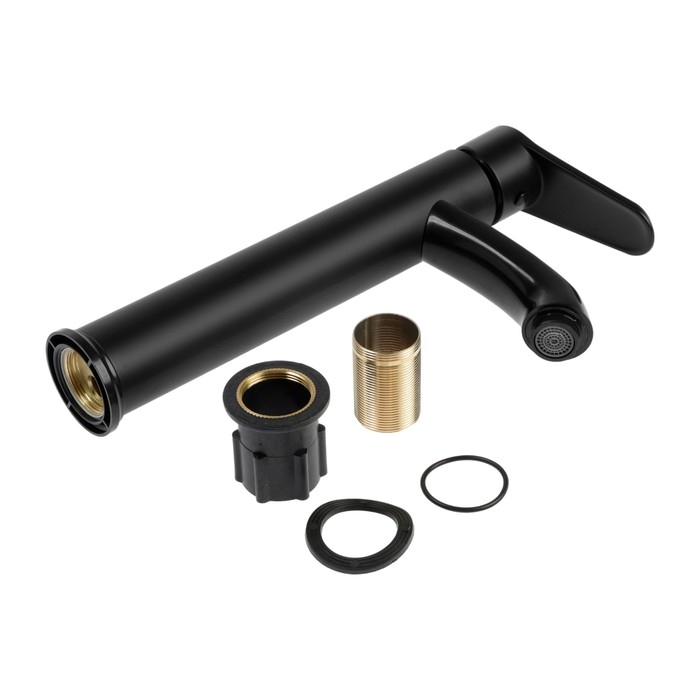 Смеситель для раковины ZEIN Z3723, однорычажный, длина излива 12 см, высокий, пластик,черный