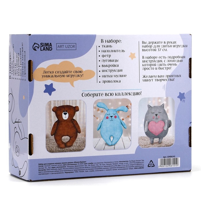 Набор для шитья. Мягкая игрушка своими руками «Мишка Брауни», 37 см