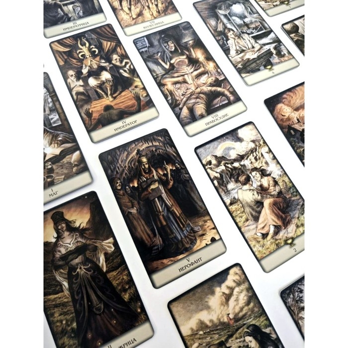 Она состоит из высококачественных карт, выполненных из прочного картона. В комплекте идет подробная инструкция, которая поможет вам разобраться с каждой арканой и правильно интерпретировать их значения. Также в комплекте есть специальный короб для удобства переноски и хранения.