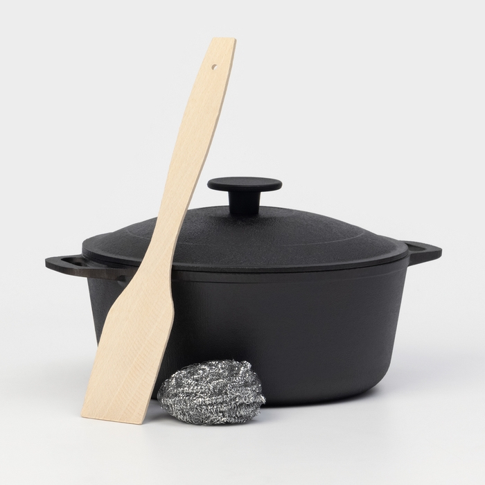 Кастрюля чугунная Wild Kitchen, 3 л, лопатка и губка в комплекте