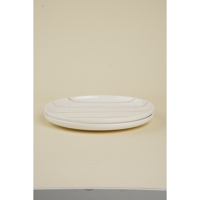 Набор состоит из двух плоских тарелок, идеально подходящих как для повседневного использования, так и для особых случаев. Гладкая текстура и белоснежный цвет создают гармоничное сочетание, а тонкий рисунок в виде полос добавляет тарелкам изысканности, сохраняя их универсальность.