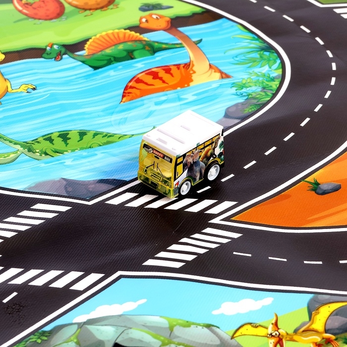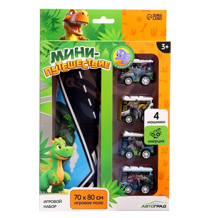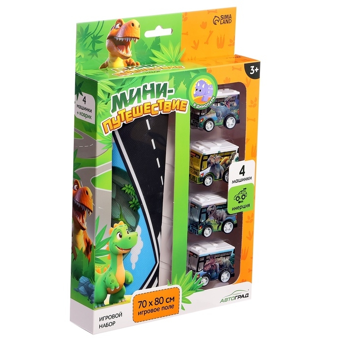 Игровой набор «Динопарк», 4 инерционные машинки, коврик-дорога